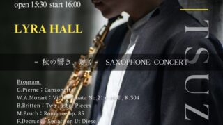 コンサート情報 都築淳 サクソフォンコンサート 2025年9月23日、LYRA HALLで都築淳サクソフォンコンサート「秋の響き、聴く」を開催。ピアノ佐藤麻里と共演し、名曲の数々をお届けします。 2025.08.29 コンサート情報