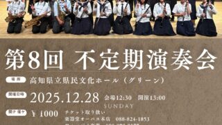 2025年12月28日(日)、高知県立県民文化ホールにてClé de Rêve(元 高知音楽塾)第8回不定期演奏会を開催!ジブリ、ディズニー、JIN-仁-など多彩なアンサンブルから大合奏まで。年末のひとときを温かい音楽と共にお過ごしください。【入場無料】